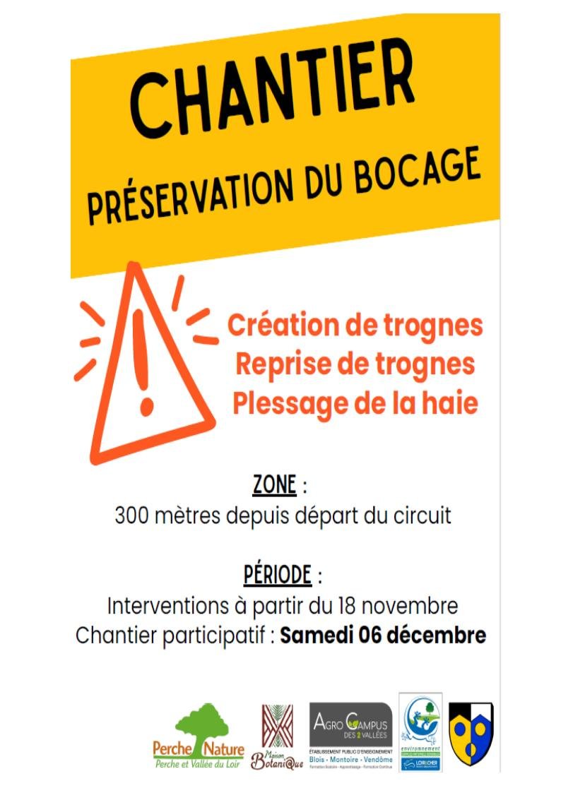 A partir du 18 novembre 2025, des interventions auront lieu sur une portion du chemin afin de créer de nouvelles trognes, en entretenir d’autres (reprises) et plésser des haies.